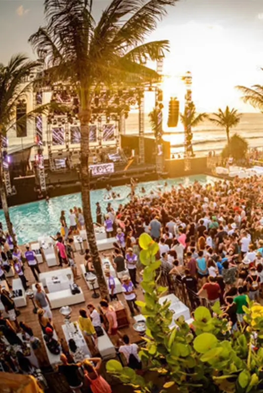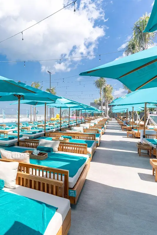The bigest beach club in Bali, offering luxury lounges, delicious dining, vibrant entertainment with beautiful oceanfront view.